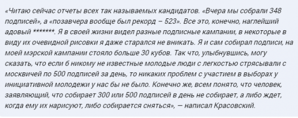 Естественно, на такую небывалую «прыть» по сбору подписей отреагировали общественники. Так, известный журналист Антон Красовский написал: