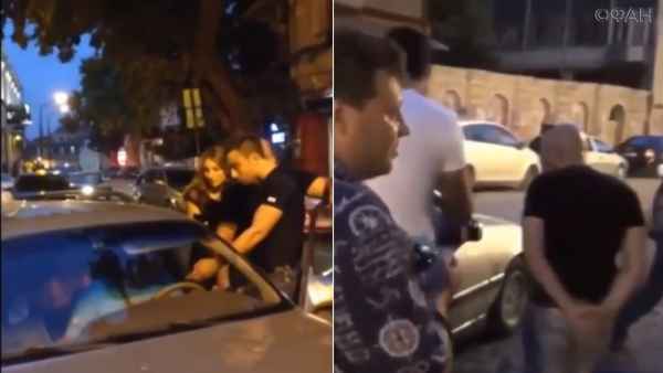 На кадрах видно, что машину, в которой находятся туристы из РФ — мужчина и, предположительно, его жена и дочь — окружили несколько грузинских националистов. Они выкрикивают оскорбительные фразы и клеят на автомобиль пару наклеек. После того, как машина с российскими номерами отъезжает, мужчины достают из своего автомобиля флаги Грузии и Украины.