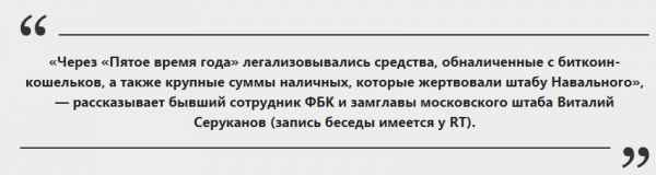 Ссылка на второй кошелек по-прежнему висит на сайте «штаба Навального». После фиктивной избирательной кампании на него поступило 327 ВТС (186 миллионов рублей). Как отметил Виталий Серуканов, до 2018 года «монеты» легализовали через фонд «Пятое время года», а после его закрытия Навальный и Волков наплодили новые организации для «отмыва» вроде «Фонда организации и координации защиты прав граждан».