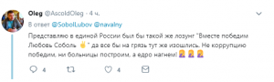 С отношением людей к кандидату Навального все ясно, но это еще не самое плохое для нее. Тревогу вызывает то, что от Соболь отворачиваются даже ее сторонники. Откровения работников ее штаба о наплевательском к ним отношении раскрывают истинное лицо «борцов за справедливость».