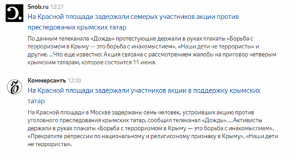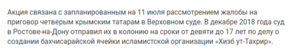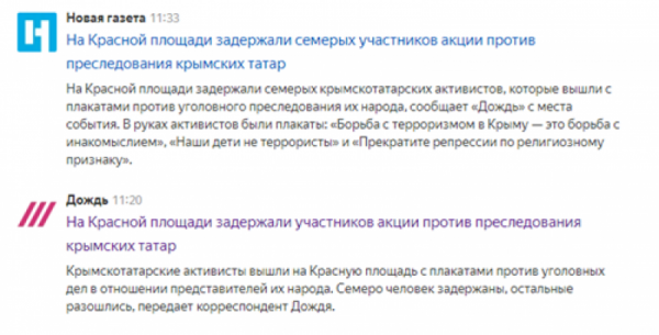 «Либеральные» российские издания не могли упустить такой шанс исказить ситуацию. Большинство из них уделили особое внимание транспарантам и лозунгам «неравнодушных крымчан»: «Наши дети не террористы», «Борьба с терроризмом в Крыму – борьба с инакомыслием» и прочее.