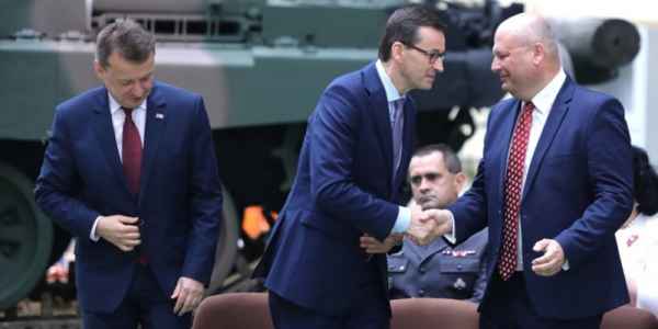 Премьер-министр Польши Матеуш Mоравецкий и министр национальной обороны Мариуш Блащак приняли участие в подписании договора на ремонт и модификацию танков Т-72 на гливицком предприятии BUMAR-LABEDY.