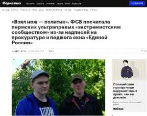 На днях интернет-издание опубликовало материал, где пытается выгородить нацистов. Четверо молодых людей подожгли офис «Единой России», чтобы самоутвердится, но в редакции не нашли состава преступления и встали на защиту нарушителей.