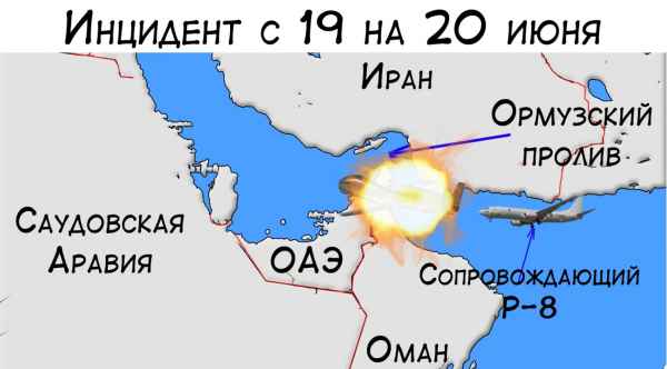 В ночь с 19 на 20 июня произошло событие, которое могло привести к конфликту между США и Ираном. Иранской системой ПВО был сбит американский разведывательный беспилотный летательный аппарат "Global hawk" над Ормузским проливом.