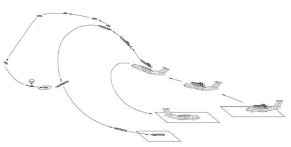 На высоте 10 километров происходит отделение первой ступени от самолёта. За три минуты она поднимается на высоту в 100 километров, после чего отстыковывается и совершает посадку на аэродром по самолётному типу. Вторая ступень выводит на орбиту полезный груз, а затем сходит с орбиты при помощи ЖРД и приземляется с использованием парашюта.