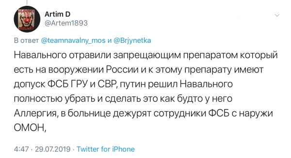 Если бы того же Навального хотели убрать (не знаю, зачем, но допустим) - сегодня есть масса способов сделать это чисто и наверняка. Устраивать же очередное «недоотравление», на котором начнут хайповать и зарабатывать политические бонусы все, кому не лень - контрпродуктивно.