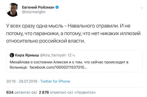 P.S. Единственный интересный во всей этой истории нюанс - это вопрос о том, кто же сейчас ведёт Твиттер Навального. Сам умирающий, или находящаяся у его постели (на самом деле - она так и не появилась в больнице) жена?