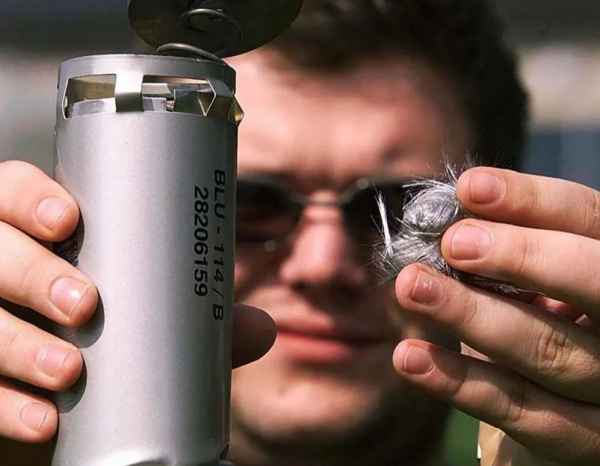 Для выведения из строя энергосистемы и служит графитовые бомбы – боеприпасы нелетального действия. Каждая такая бомба содержит множество тонких углеродных (графитовых) нитей, уложенных в металлический контейнер. При активации бомбы нити выбрасываются из контейнера, разрываясь на мелкие кусочки и пыль, и представляют собой сплошное графитовое облако, оседающее на землю.
