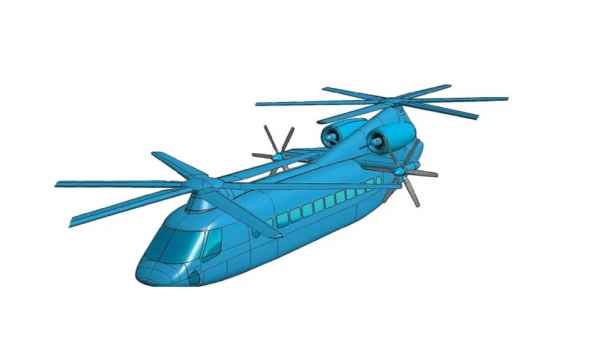 Мощность, вырабатываемая двумя газотурбинными силовыми установками, распределяется между винтами через редукторы. Вертолёт отдалённо напоминает советский двухвинтовой «Як-60», который в отличие от «Ка-102» лишен боковых винтов. При собственной массе в 14,5 тонн (без учёта топлива) аппарат может взять на борт 7 тонн дополнительной нагрузки или 90 человек в пассажирском варианте.