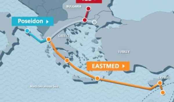 Автор статьи «Природный газ с Востока или Севера?» Ефтимис Ангелудис пишет о том, что в Афинах 7 августа прошла министерская конференция Греции, Кипра, Израиля и США по энергетике. На ней, помимо прочего, обсуждалась реализация проекта трубопровода EastMed (Eastern Mediterranean Pipeline Projeсt). По проекту трубопровод Восточного Средиземноморья доставит природный газ из богатых месторождений восточного Средиземноморья Израиля через Кипр и Грецию в Европу.