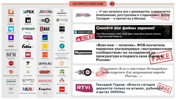 Редакция ФАН занялась тщательным изучением материалов российских СМИ, распределяя ресурсы по определенным категориям. В список антироссийских изданий попали те, кто публиковал антигосударственные статьи, искажая факты о прошедших в Москве событиях.
