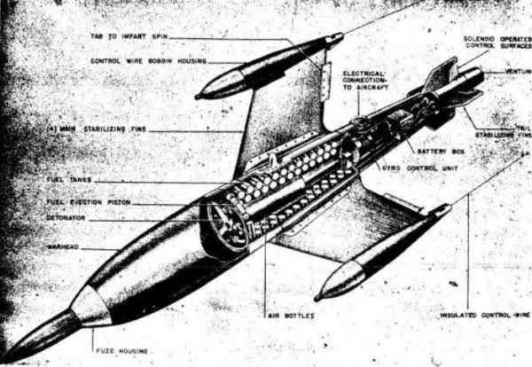 Работы над управляемым боеприпасом начались еще в 1940 году. Бомба оснащалась ракетным двигателем и могла разгоняться до 250 м/с. Боевая часть ракеты состояла из 500 кг взрывчатки. После пуска боеприпаса в его хвосте загоралось пять трассеров, которые помогали наводчику в дистанционном управлении ракетой. Работы над ракетой затянулись до 1943 года. Когда новинка могла отправиться в массовое производство, было «немного поздновато». Господство флотов стран-союзниц на море было уже подавляющим.