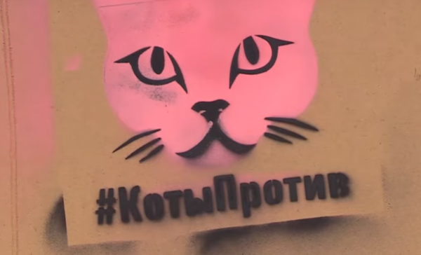 Эмблема розового кота с подписью «Коты против» на сегодняшний день есть практически на каждой улице Петербурга. Активисты движения таким образом закрашивают рекламу наркотических веществ, помогая в этой борьбе коммунальным службам.