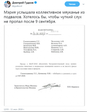 Например, вся Москва смеялась над его попыткой приписать себе звание «спаситель кошек». Гудков заявил в соцсети, что добился запрета на блокировку продухов подвалов, чтобы кошки могли там прятаться и зимовать.