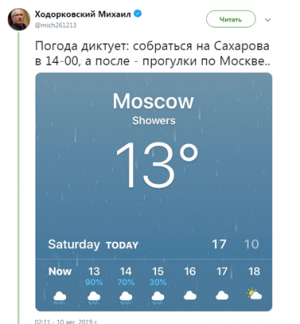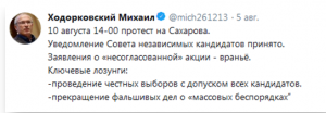 Журналист «Эха Москвы» Пархоменко выдумал историю о том, что на будущем митинге может произойти убийство. Ходорковский радостно подхватил эту идею и создал свой фейк. Он привык использовать «сакральные жертвы». Например, когда отправил журналистов в ЦАР без охраны, понимая, что живыми они оттуда не вернутся.