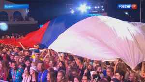 Сегодня вся страна отмечает 350-летие российского флага. У участников фестиваля «Таврида-АТР» празднование началось с масштабного флешмоба, где 4,5 тысяч человек развернули гигантский триколор под аккомпанементы гимна России. Было красиво.