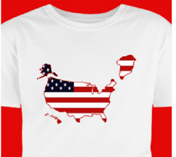 Очертания Гренландии и Соединенных Штатов, раскрашенные в цвета государственного флага со звездами последних, появились на футболках. Такой маркетинговый ход использовал Национальный комитет Республиканской партии.