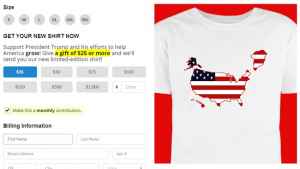 "Поддержи президента Трампа и его усилия помочь Америке расти! Пожертвуй от $25 и больше, и мы пришлем тебе нашу новую футболку из ограниченной коллекции", – призывают республиканцы.