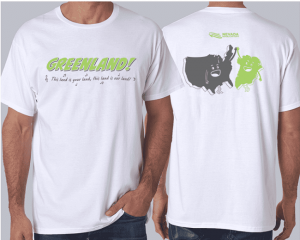 На футболке красуются антропоморфные изображения основной территории США и Гренландии, изображающие радость от «встречи», а также надпись «Гренландия! Эта земля — ваша земля, эта земля — наша земля!». Партия призывает покупать футболки, чтобы «показать свою любовь к Гренландии, США».