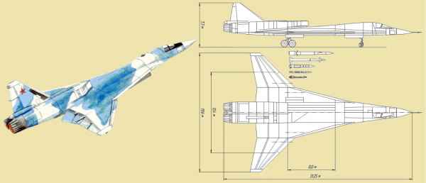 Перехватчик должен был преодолевать до 7 тысяч км на скорости 2500 км/ч; на "дозвуковом" скоростном режиме максимальная дальность полёта возрастала на 4 тысячи километров. Истребитель оборудовался двумя турбореактивными установками «АЛ-41Ф» с общей форсажной тягой в 40 тонн. При собственной массе в 58 тонн (с полным запасом топлива) он мог взять до 12 тонн боевой нагрузки, размещавшейся во внутреннем отсеке.