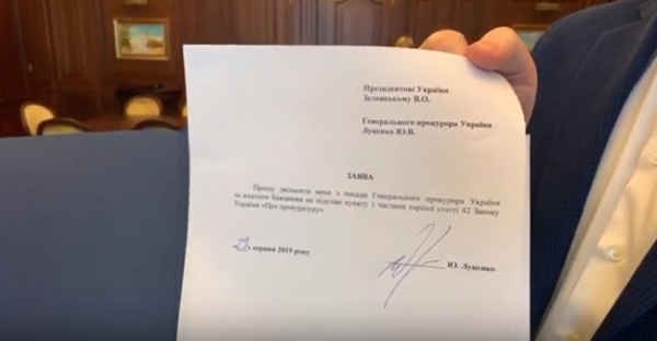6 августа Луценко заявил, что уйдет в отставку после начала работы Верховной Рады нового созыва, первое заседание которой состоялось сегодня, 29 августа.