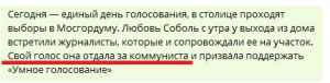 В первоначальном сообщении «Дождя» говорилось о том, что Соболь отдала свой голос за коммуниста.