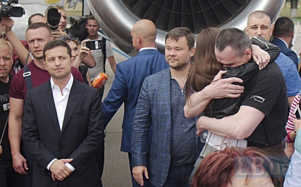 Зеленский лично приехал встречать «украинских героев». Естественно, вместе с главой своего офиса Андреем Богданом. У того был традиционно забуханный вид и какая-то легкомысленная рубашечка в мелких горошек. У руководящей парочки явно чувствовалось легкая настороженность в связи с прибытием на Родину такого количества «героев». Я называю это «синдромом Наденьки Савченко». Она вот тоже вернулась под фанфары, а затем, спустя некоторое время, решила пострелять по куполу Рады из миномета довольно крупного калибра. Миномет планировала установить на баржу, а уцелевших после прямых попаданий народных депутатов добивать из стрелкового оружия выстрелом в голову.