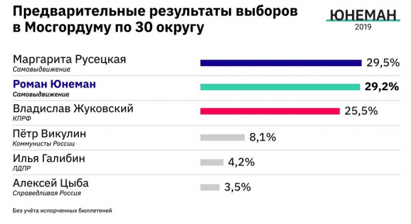 По замыслу Алексея, люди должны были голосовать против ЕР, но в итоге получилось так, что по списку не голосовал никто. Электорат «Яблока» и КПРФ проигнорировал УГ, а в МГД не прошел единственный несистемный оппозиционный кандидат Роман Юнеман. Он поддерживал Навального, бывал пару раз на его акциях, но самим Алексеем поддержан на выборах не был. Блогер не включил Юнемана в шорт-лист «Умного голосования».