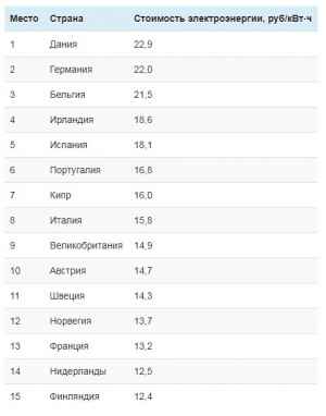 Но рекорды ФРГ в «зеленой энергетике», оказывается, очень больно бьет по карманам населения. Киловатт-часы здесь стоят дороже всего в Европе. В пересчете на рубли, немцы платят примерно 22 рубля за киловатт. Для сравнения, в Санкт-Петербурге от 2,22 руб (ночной тариф в домах где установлены электроплиты) до 5,13 руб за киловатт/час.