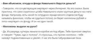 Только в «Альфа-банке» через счета «работников» ФБК в 2017-2018 годах прошло более миллиарда рублей. Деньги приносились в офис чемоданами. Сотрудники их брали и делали мнимые «пожертвования». Так, например, пресс-секретарь Навального Руслан Шаведдинов с зарплатой 60 тысяч рублей «пожертвовал» 15 млн рублей.