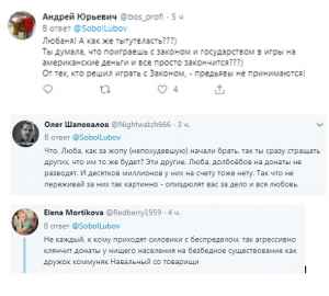 Сейчас, когда правоохранительные органы ведут следствие по этому делу, Соболь стала верещать и пытаться напугать всех. Но не тут-то было. Люди быстро напомнили ей про американские деньги и про обманутых людей.