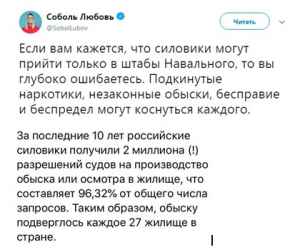 В социальной сети соратница Навального опубликовала угрожающую запись.