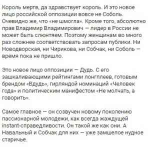 По их мнению «карта Навального отыграна и УГ стало, по сути, его лебединой песней. Даже если Алексей вернется (а он вернется) и продолжится в политике, это уже будет другая ипостась. Примерно как у Явлинского».