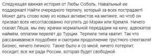 На самом деле блогер получал последние инструкции в преддверии протестного шабаша, намеченного на завтра. В частности, западные кураторы требуют «красочное винтилово и много посадок». Основная ставка делается на пиар дела Устинова и привлечение к этому инфоповоду артистов. Спонсоры не поскупились: к примеру, за призывы выходить на митинг актриса Александра Бортич получила миллион рублей.