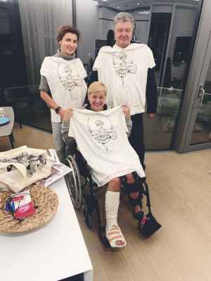 Порошенко привез Гонтаревой футболку с ее изображением в балетной пачке и ногой в гипсе. Также экс-президент пообещал «не сломаться».
