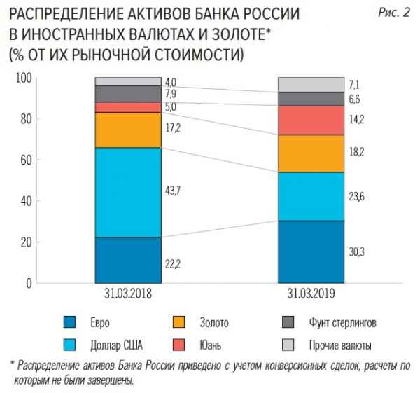 США потеряли и почти половину вложений России в доллары. ЦБ РФ увеличил запасы золота, посчитал привлекательной европейскую валюту и китайский юань.
