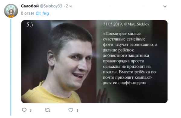 Аналогичными склонностями обладает ещё одна личность, чья фамилия сейчас постоянно на слуху. Речь идет о Владиславе Синице, который вел блогерскую деятельность под псевдонимом Макс Стеклов. Он также постоянно писал о расчлененке и убийствах детей сотрудников правоохранительных органов. Суд приговорил его к 5 годам лишения свободы за доказанный факт разжигания ненависти.