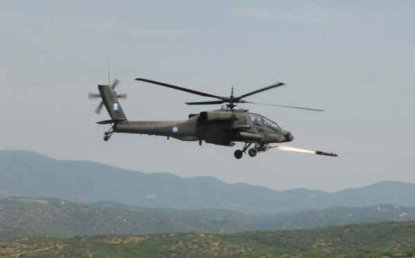 Пуск «Апачем» ПТУР «Хеллфайр».