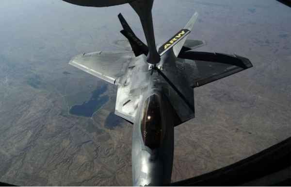 Дозаправка F-22 в районе базы Аль-Хауль в сирийской провинции Ракка.