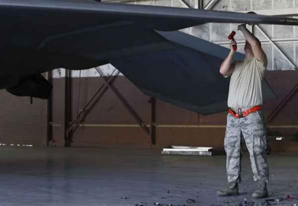 Вам не показалось - с помощью молотка и зубила происходит очистка поверхностей F-22 от фрагментов стелс-покрытия