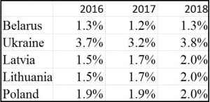 В сравнении с ВС Литвы и Латвии армия Беларуси превышает соседей по всем показателям, за исключением двух. У Беларуси нет флота и, самое главное, выделения на оборону, выраженные в отношении к ВВП, гораздо скромнее, чем военные траты Вильнюса и Риги.