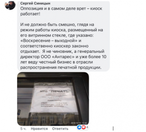 Ну а на днях он придумал новую лживую историю про эти несчастные ларьки. Он сфотографировал один из них и заявил, что киоски-то на самом деле не работают! И он прав, только это был выходной день, поэтому причина их закрытия очевидна.