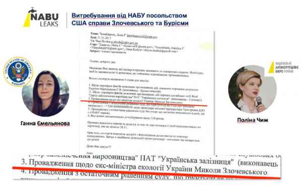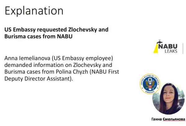 Слайд первый: запрос посольством США от НАБУ дела Злочевского и «Буризмы»