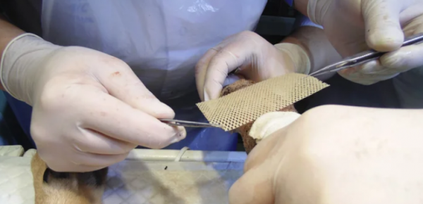 В качестве материла для пересадки использовалась кожа свиньи, из которую предварительно модифицировали.
