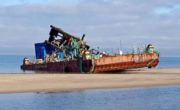 Поврежденная взрывом неизвестной ракеты морская испытательная платформа на полигоне Ненокса
