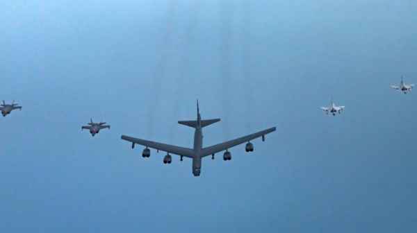 Недалеко от побережья Крыма заметили американский стратегический бомбардировщик Boeing B-52H Stratofortress, который потренировал бомбовый удар и улетел.