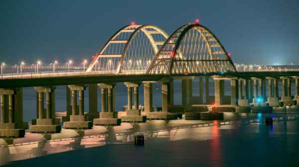 Транспортный переход через Керченский пролив запылал разноцветными огнями. Зажгли его ночью, поэтому кадры, которые сняли с коптера, получились волшебными.
