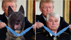 Кстати, на данном видео хорошо видно, как по какому-то дому наносится удар, под который попадает группа вооруженных людей с собакой. Возможно, это именно та собака, которую наградил Дональд Трамп, и образ которой был впоследствии был растащен на мемы.