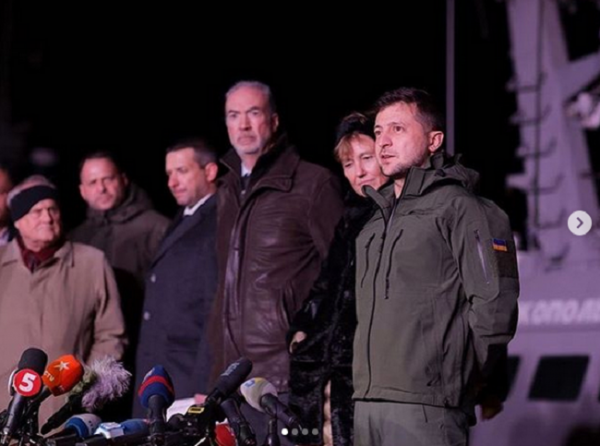 «Я хочу извиниться, что небритый. Это не просто так. У нас есть такое украинское слово — „забобоны“ (суеверия — ред). Чисто украинское слово, очень классное слово, я очень люблю. Такой есть „забобон“. Знаете: сейчас я жду корабли — корабли вернутся, тогда побреюсь», — объяснил свой внешний вид Зеленский премьер-министру Чехии Андрею Бабишу.
