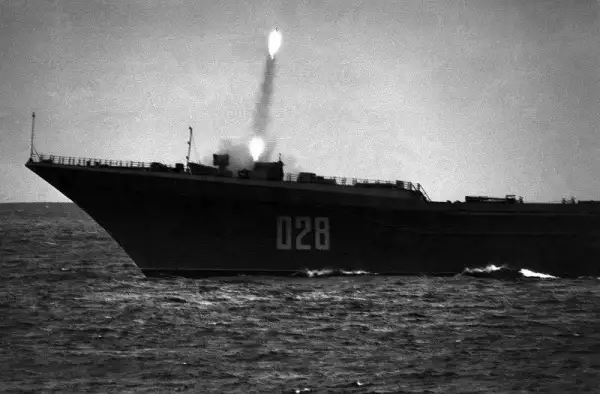 Пуск ракеты ЗРК "Кинжал" с атомного крейсера "Фрунзе" ("Адмирал Лазарев"), конец 1980-х